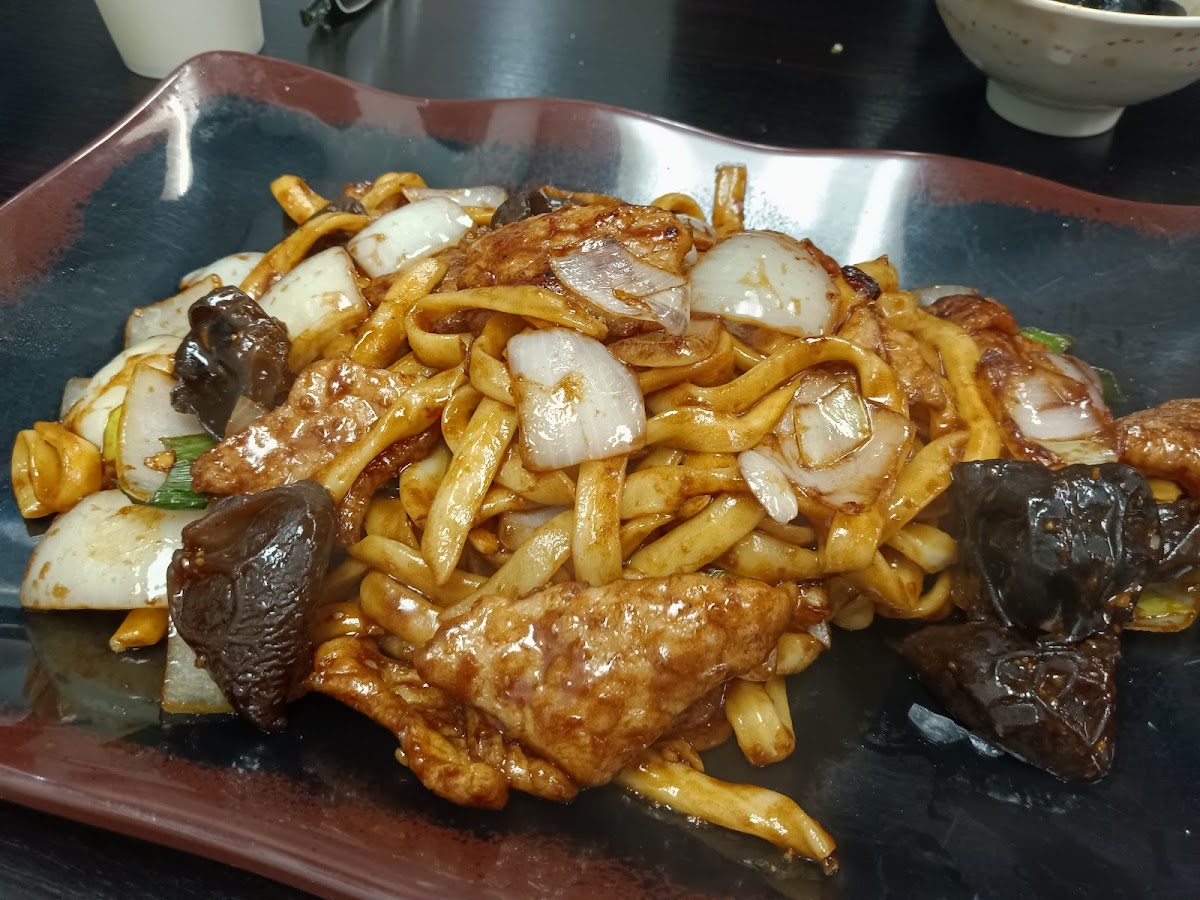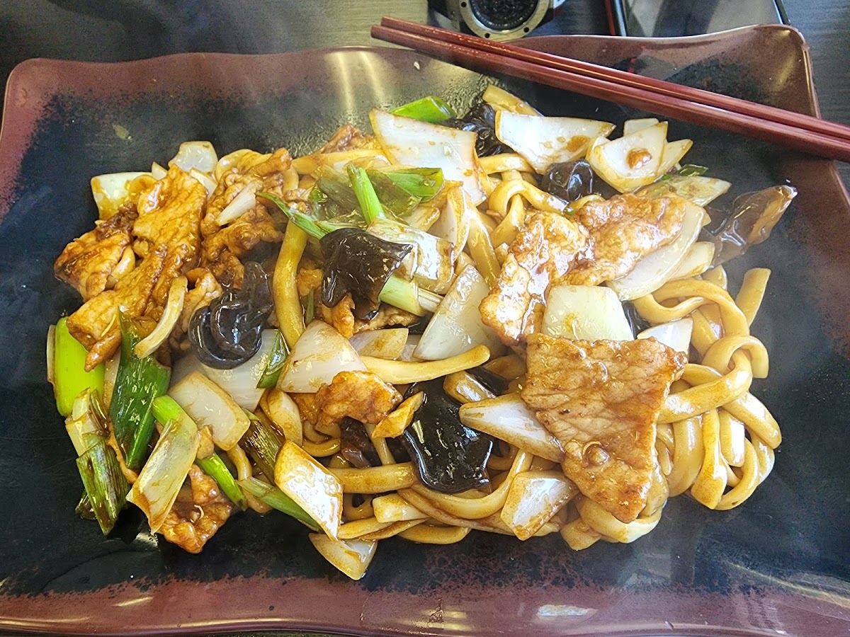 Dao xiao style. Served with fried broiled pork, Leek, black fungus and onion